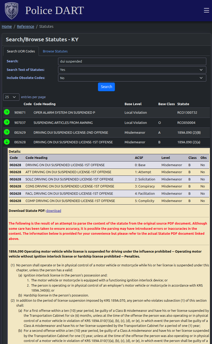 - Legal Statutes - Browse or search legal texts and offense codes.